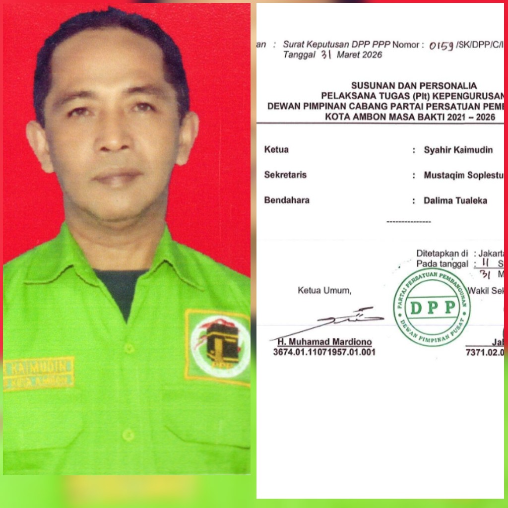Bacarita.Maluku.Com–Ambon; Dewan Pimpinan Pusat (DPP) Partai Persatuan Pembangunan resmi menerbitkan Surat Keputusan (SK) penunjukan Pelaksana Tugas (Plt) untuk Dewan Pimpinan Cabang (DPC) PPP Kota Ambon.