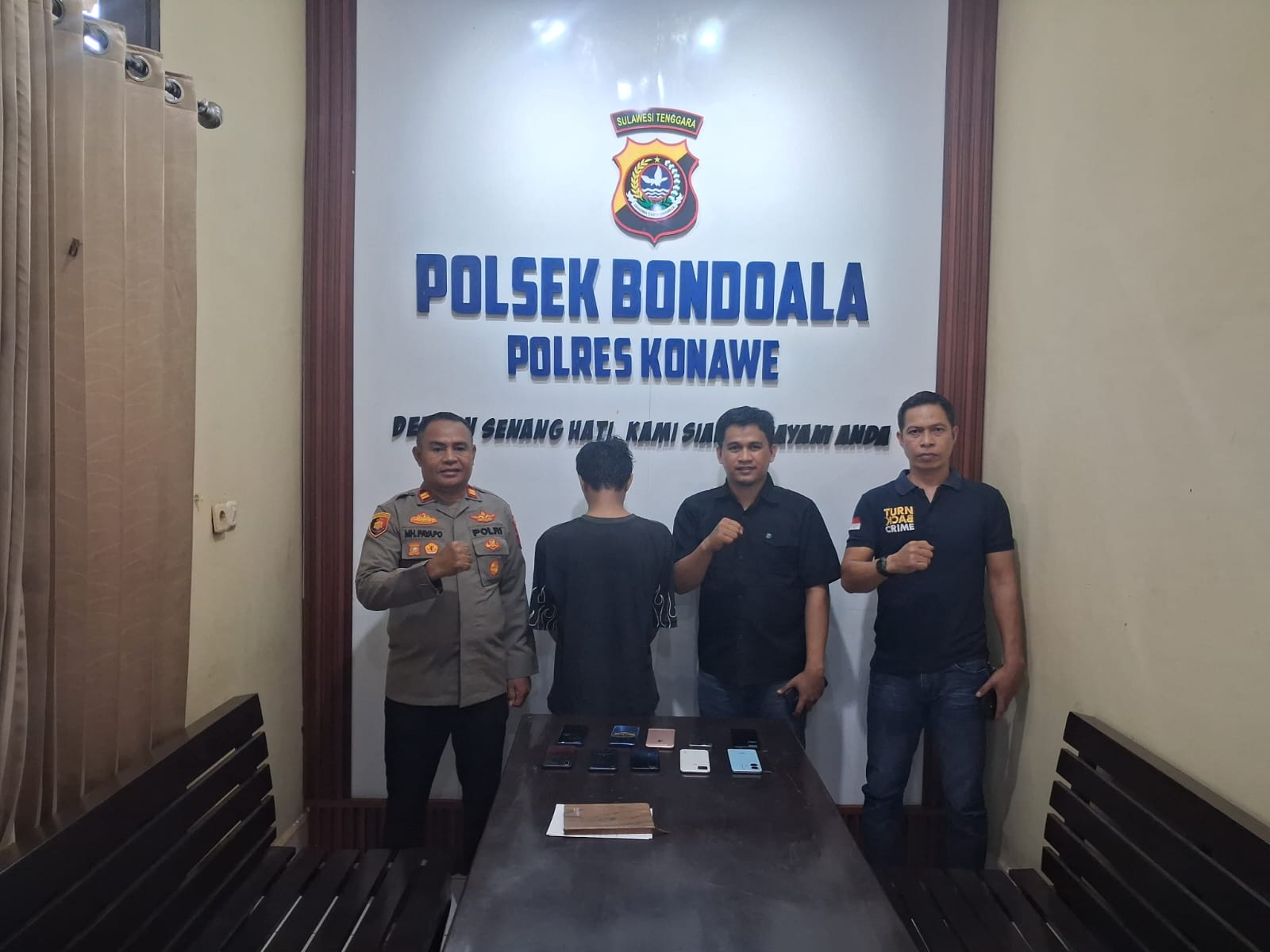 BacaritaMaluku.com–KONAWE;Tim Kepolisian Sektor (Polsek) Bondoala, yang dipimpin langsung Kapolsek IPTU Muh. Heder Payapo, berhasil mengamankan seorang terduga pelaku pencurian barang elektronik berinisial FF. Dari tangan pelaku, polisi menyita 10 unit telepon genggam berbagai merek sebagai barang bukti.