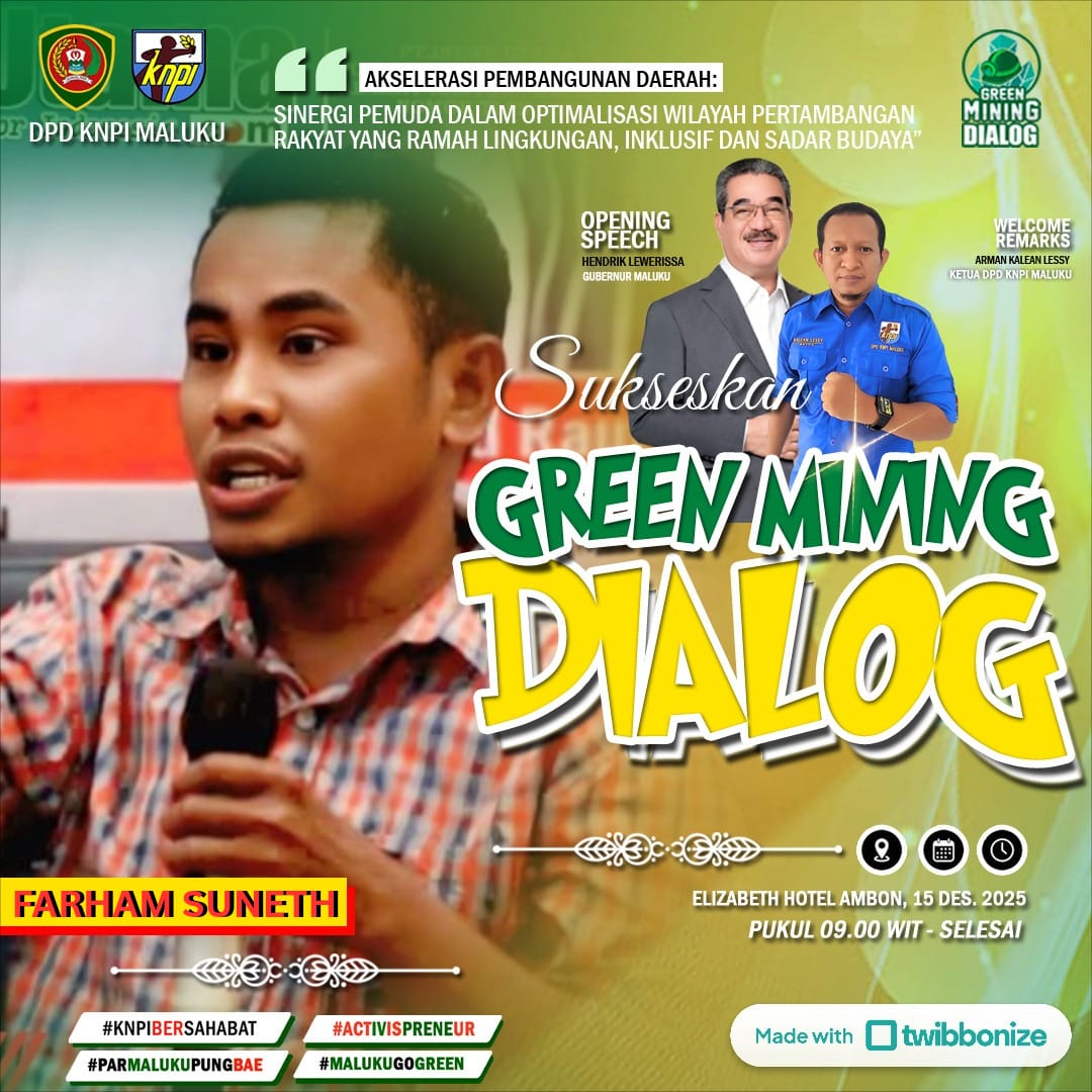 Ambon, BacaritaMaluku.com— Dewan Pengurus Daerah Komite Nasional Pemuda Indonesia (DPD KNPI) Maluku menjadwalkan gelaran Green Mining Dialog 2025, sebuah forum diskusi yang mengangkat tema pengelolaan pertambangan berkelanjutan dan ramah lingkungan.