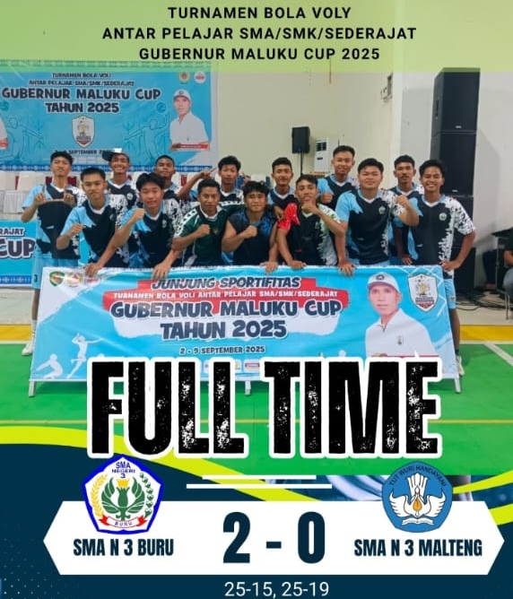 Akhirnya pertandingan berakhir dengan kemenangan yang di menang kan telak oleh tim SMAN 3 Buru Kabupaten Buru melalui dua set langsung (2–0) tanpa balas.