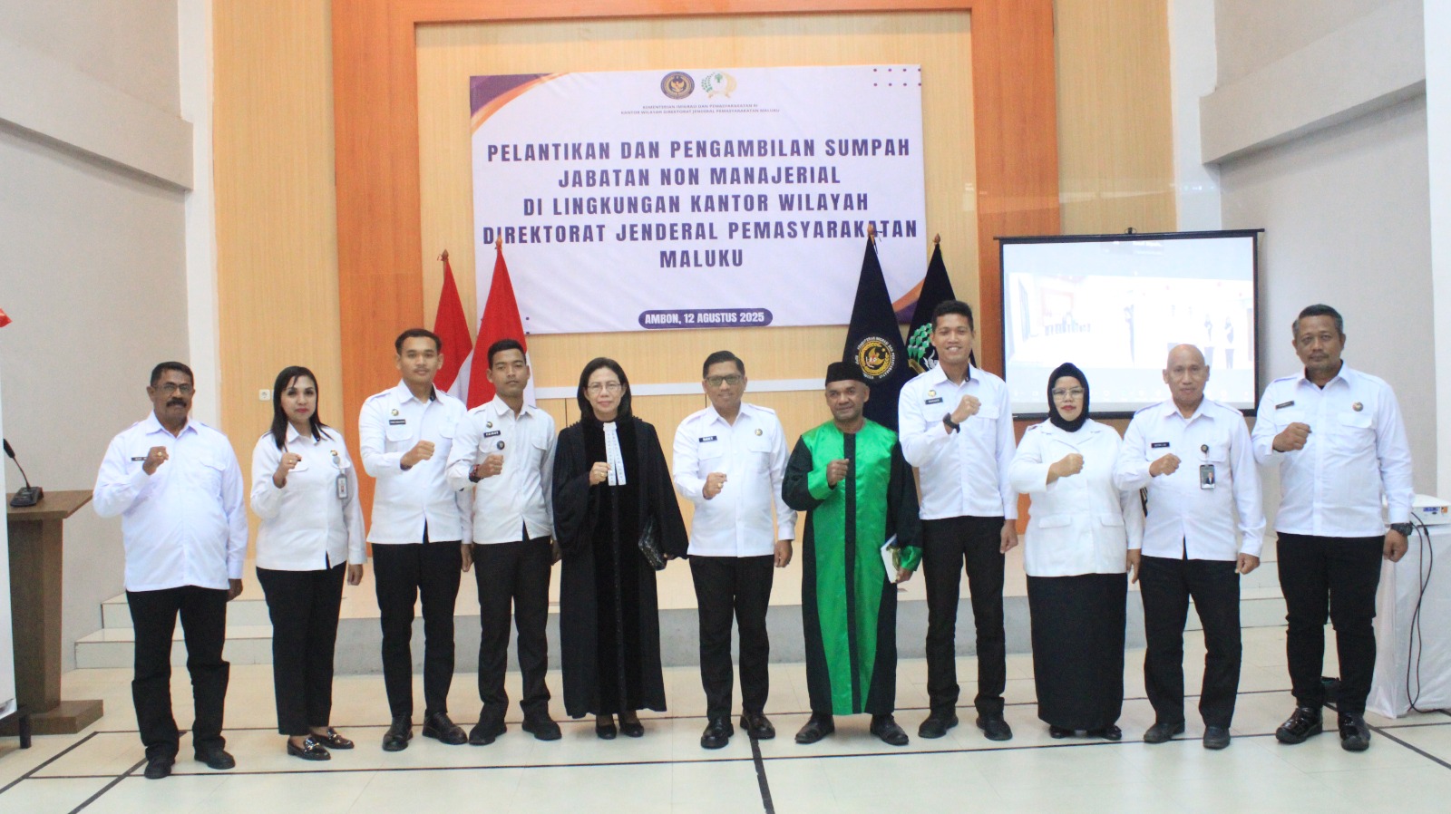 Pelantikan dan pengambilan sumpah jabatan non Manejirial di lingkungan Aula Kantor Wilayah (Kanwil)Ditjen pas Maluku (Ambon) 12/8/2025.
