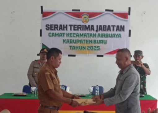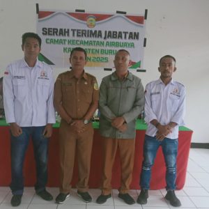 BacaritaMaluku.com–NAMLEA; Dilangsungkanya serah terima jabatan (Sertijab) dari Camat Airbuaya sebelumnya Hamisi Umasugi kepada Camat yang baru yakni Yusri Duila SH di Aula Kantor Camat Desa Airbuaya Senin (11/8/2025).